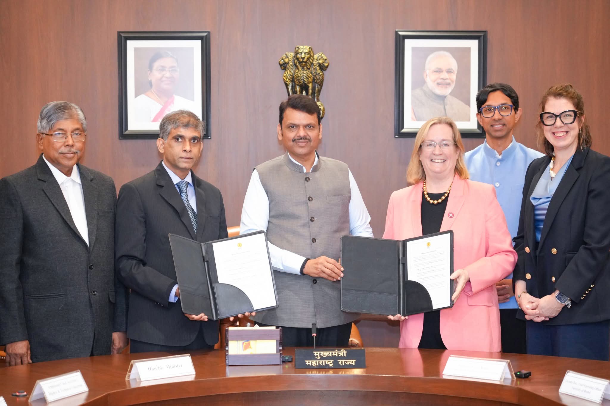 मुंबई: मुख्यमंत्री देवेंद्र फडणवीस यांच्या उपस्थितीत आज विधान भवन, मुंबई येथे महाराष्ट्र शासन आणि युनिव्हर्सिटी ऑफ ब्रिस्टल मुंबई कॅम्पस प्रायव्हेट लिमिटेड (UoB-M) यांच्यात सामंजस्य करार करण्यात आला.